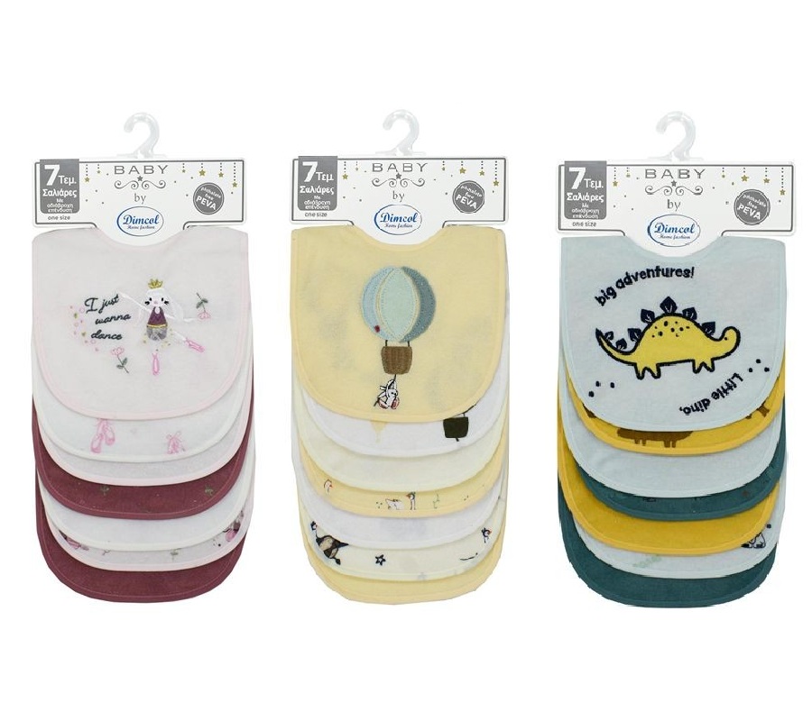 Σετ σαλιάρες 7 τεμαχίων δύο στρώσεων σε διάφορα σχέδια και χρώματα,