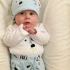 Μέσα στο κουτί είναι κρυμμένο ένα φανταστικό βαμβακερό σετ, ζιπουνάκι με παντελονάκι και βρεφικό σκουφάκι,με την ίδια εκτύπωση όπως του κουτιού!