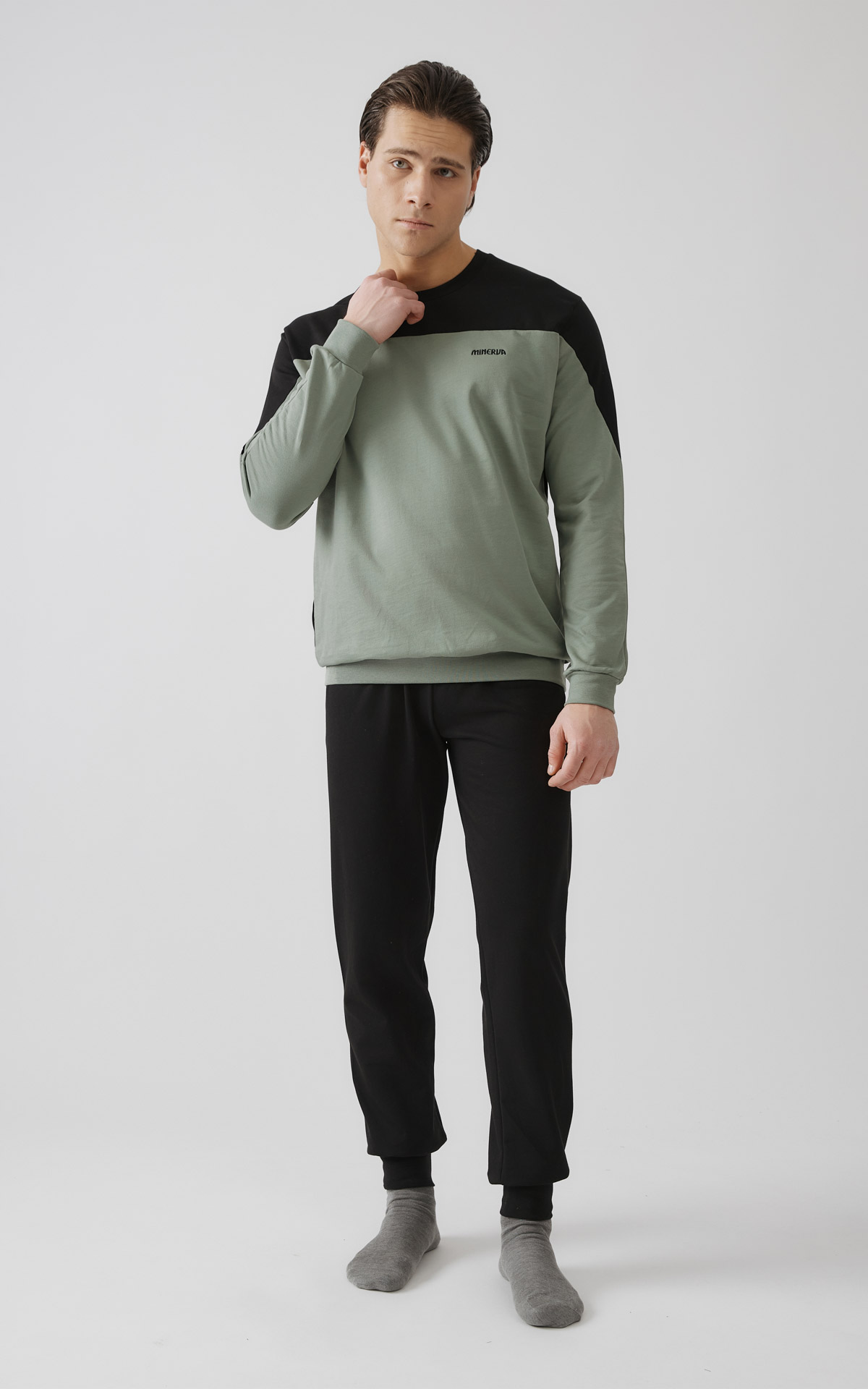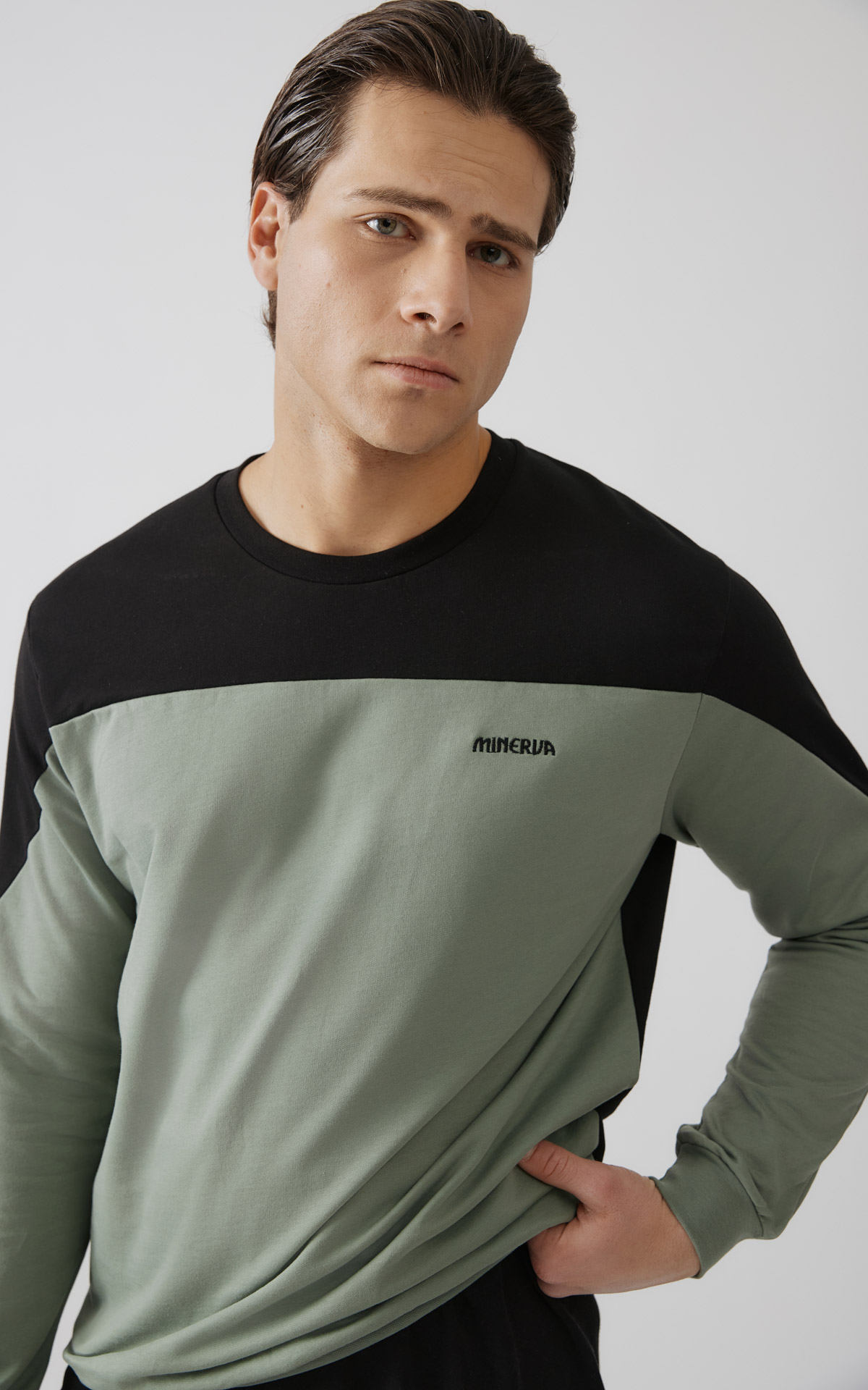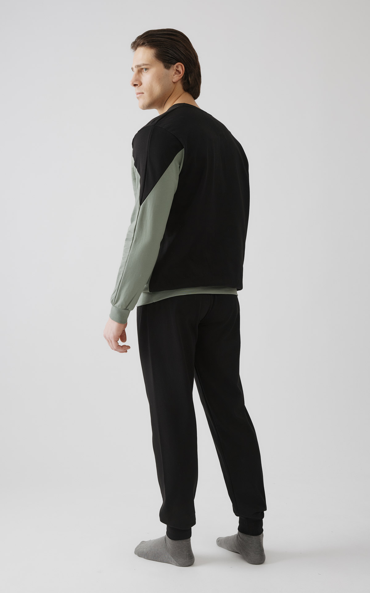 Το σετ περιλαμβάνει μπλούζα με στρογγυλή λαιμόκοψη, διχρωμία, κέντημα στο στήθος