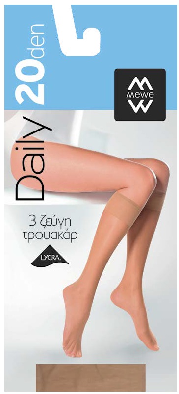 Συσκευασία με 3 ζευγάρια τρουακάρ ελαστικές κάλτσες ως το γόνατο της ελληνικής εταιρίας Me We.