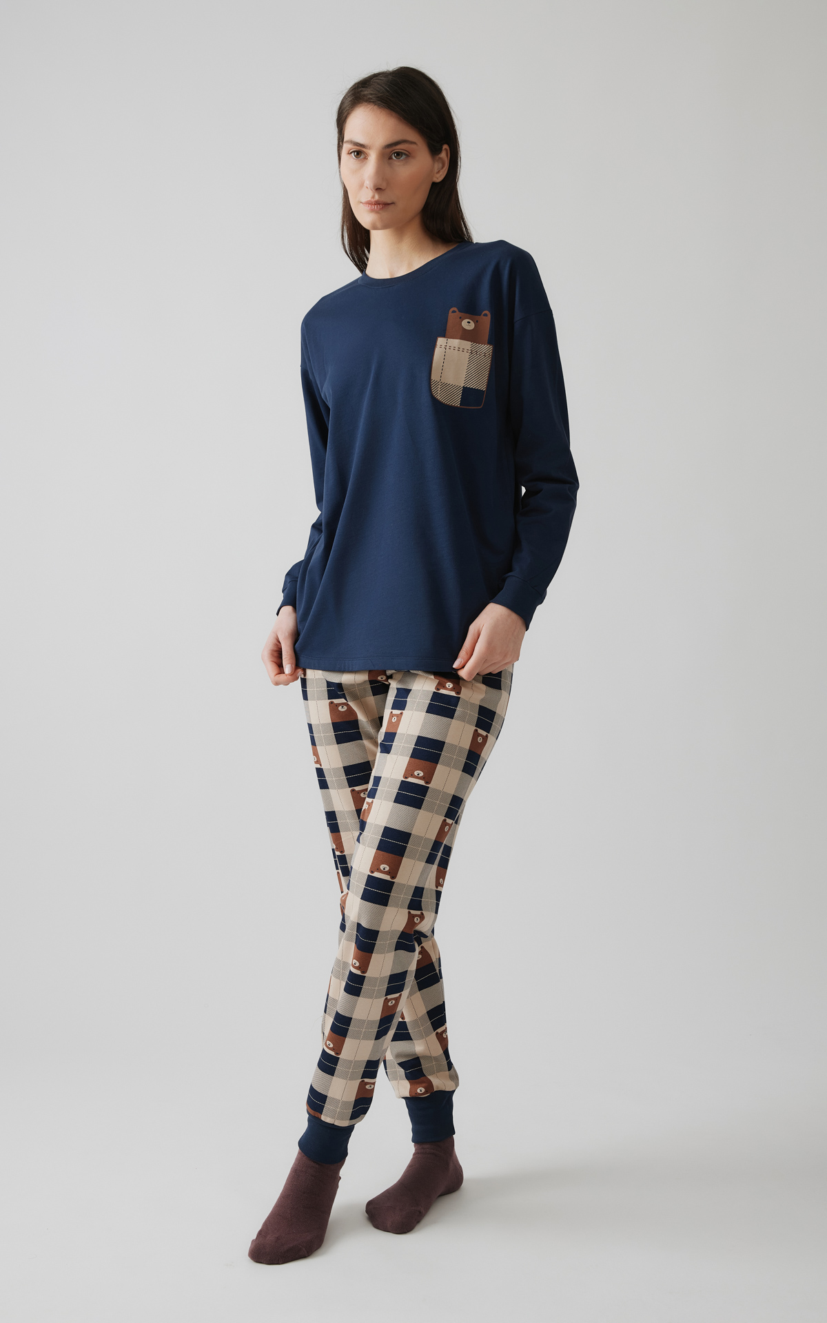Χειμερινή γυναικεία πυτζάμα, αρκετά ζεστή, από 100% βαμβακερό φούτερ ύφασμα, υψηλής ποιότητας.