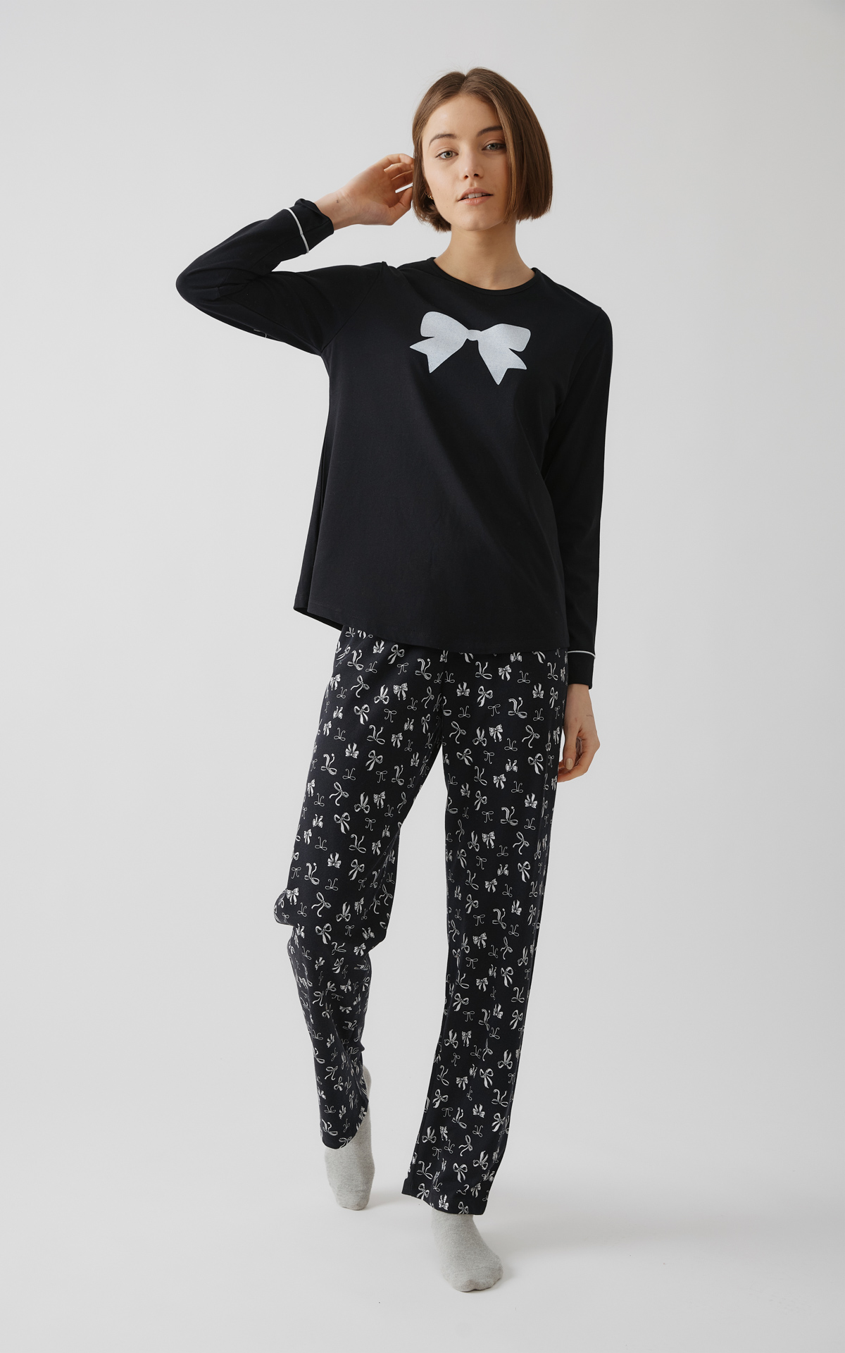 και παντελόνι σε ίσια γραμμή και all-over σχέδιο.